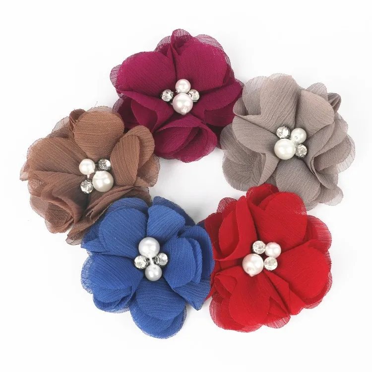 Hair Accessories Fabric Chiffon Flower Patch 3d Bunga With Pearls For Baby Headband Diy Craft Buy Chiffon Flower Hair Accessories Flowers Flowers For Baby Product On Alibaba Com