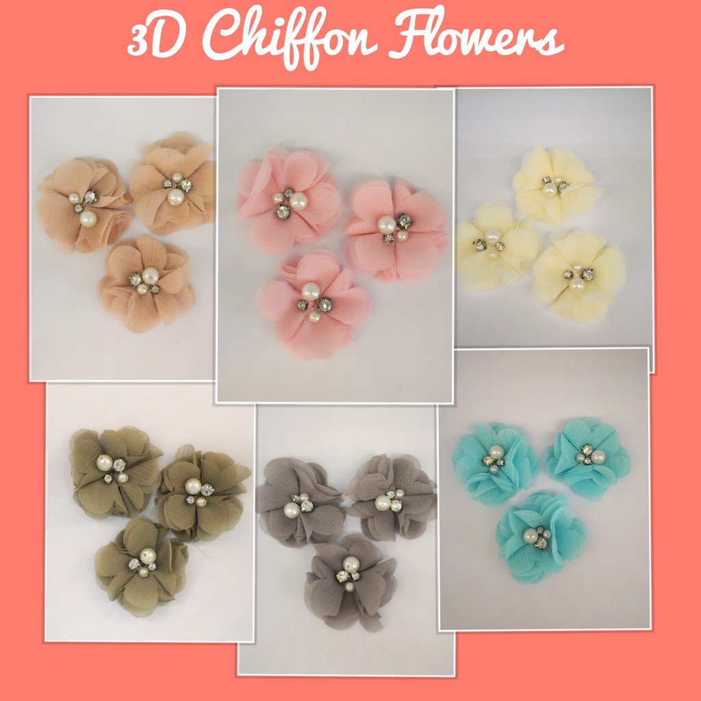 4 Pcs Bunga 3d 3d Chiffon Flowers Shopee Malaysia