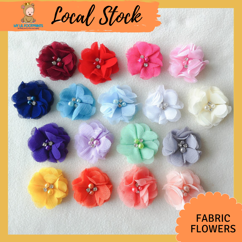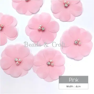 Pearl Jewel Chiffon Flower Fabric Flower 3d Kain Bunga For Handmade Diy Tutu Dress Decoration Baju Accessories Rambut Lazada